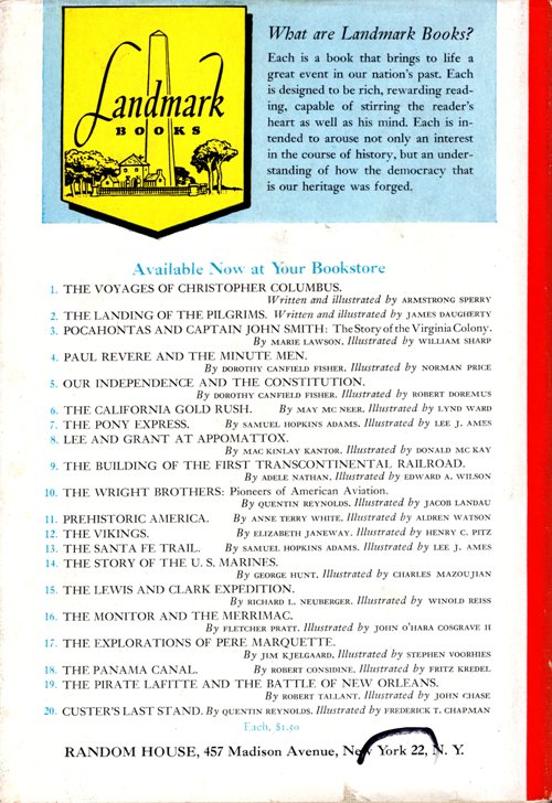 You can also see listed the first 20 books of the Landmark Books. I am not sure how many of these that I have, but this is just the beginning of the series. There are 122 titles in the Landmark Books series and another 63 titles in the World Landmark Books series.