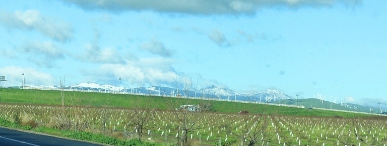 The picture here is a bit blurry, but you can see that even the hills that line the western edge of the Central Valley have snow on them. I do not remember seeing the tops covered with snow in the last 20 years, but then again I often travel in the winter time.