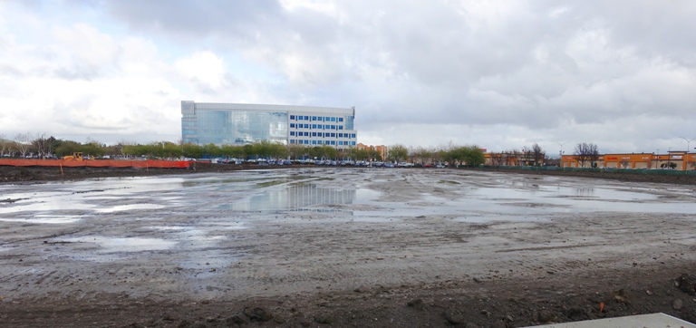 It was much too wet at the actual site of where the building will be built. There was a lot of standing water which made for some good reflections.