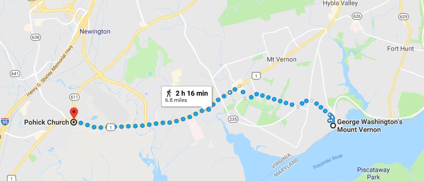 I used Google maps to see how far the Pohick Church was from Mount Vernon. It is only seven miles away.
