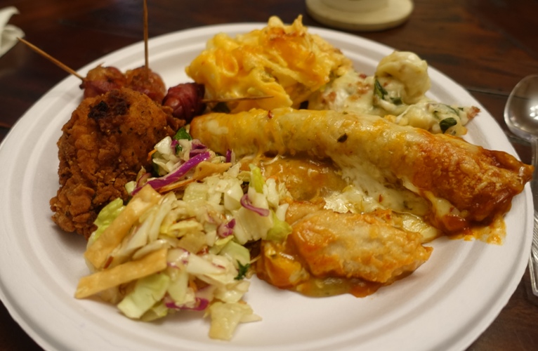Here is my plate of food, you can see that there is some nice salad on the plate to go with the other choices.