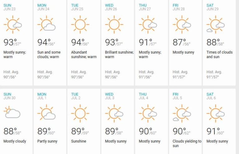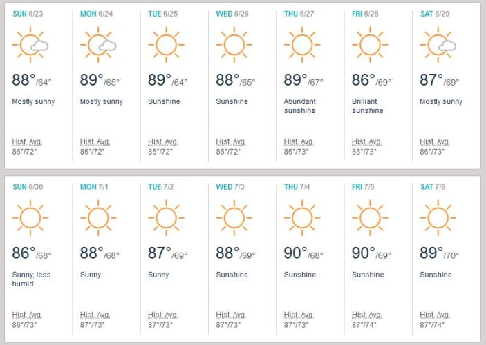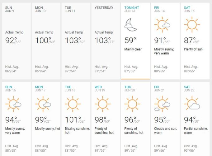 Here you can see that there were three days with triple digit heat earlier this week and one day in the forecast for next week. Also a lot of upper 90’s.