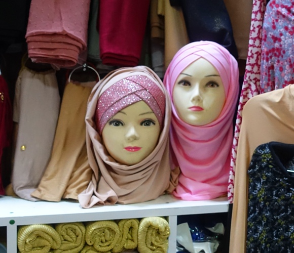 There were a lot of clothing stalls and shops. In several places I saw mannequin heads displaying scarves. They always look a bit interesting.