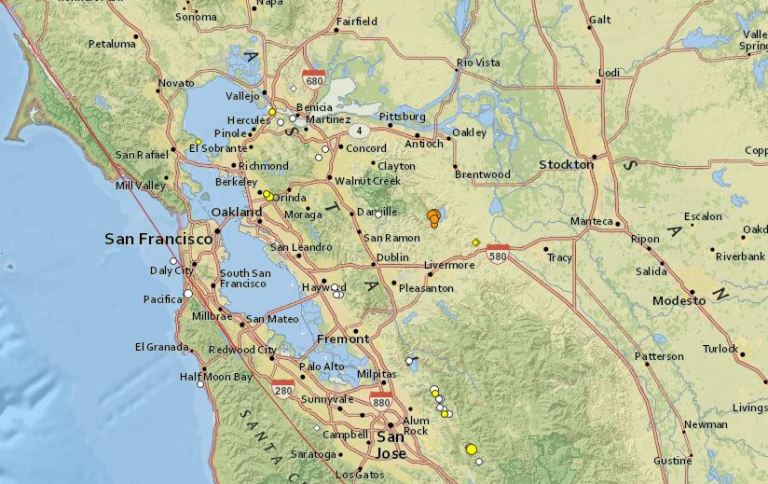 I also looked at the shake map, and the quake was felt over the entire Bay Area and up and down the Central Valley.
