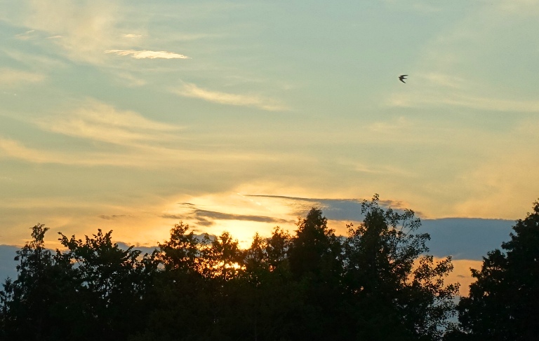 The sky was full of clouds and there were nice views through the trees of the setting sun.