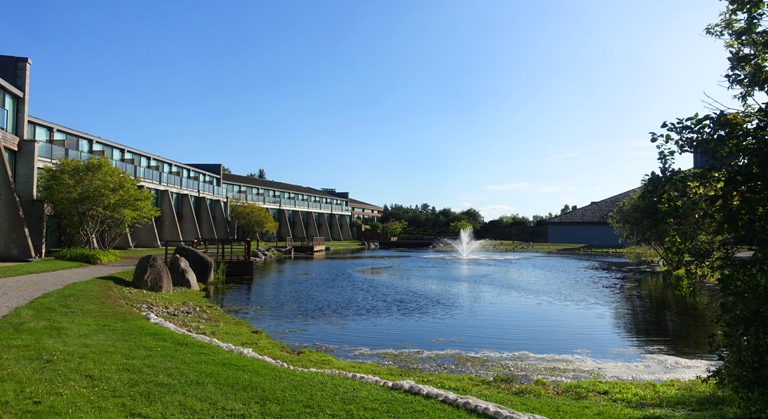 Here is the hotel wing of the Kingridge Centre, and this is the pond that my room looks out onto. I am off to the side on the opposite end, so have a much different view.