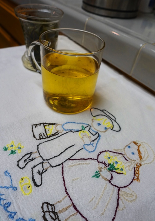 Here the leaves have opened with the addition of the water. They are releasing the wonderful flavor compounds into the water.
