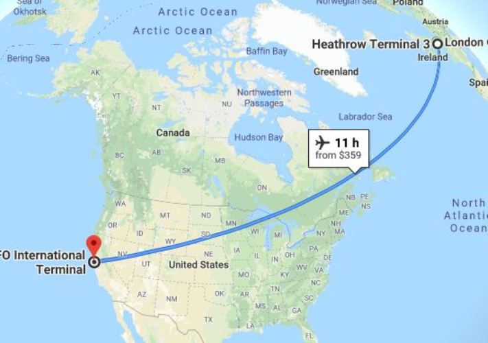 The maps above are all from Google Maps and do not show probable flight paths. I wanted to show all the flights together, so found another website where I could do that.