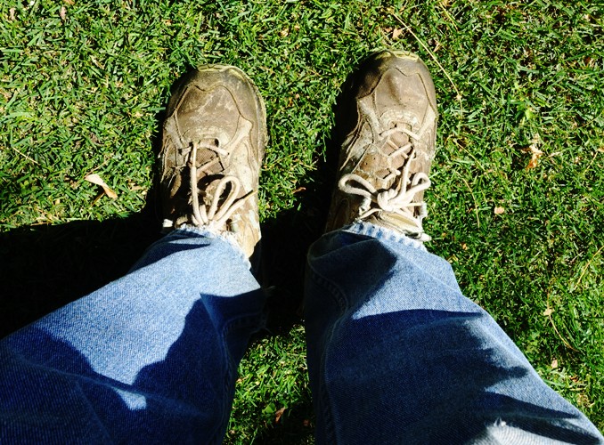 However, I have plenty of other old shoes that I could turn into mowing shoes. I will just have to find the right ones that are easy to slip on and off and will look really cool when they get dirty.