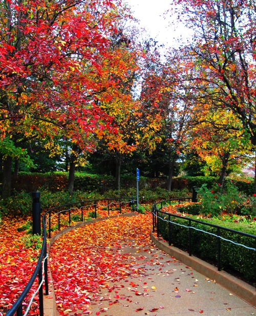 The trees start to change color and the fallen leaves collect on the sidewalks.