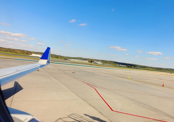 Omaha airport, United, Iowa, NebraskaHere I am on the plane in Omaha, Nebraska. You can see Iowa in the distance as the airport is just off of the Missouri River.