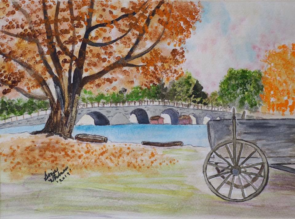 I like Sonja’s interpretation of the picture. She has changed the season and it looks very much like what it looks like in autumn. I have seen this bridge at different times of the year during my many trips to Jena.