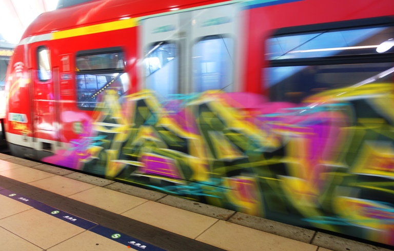 While waiting for my train I was trying to capture the interesting graffiti on one of the regional trains that had come through the station.
