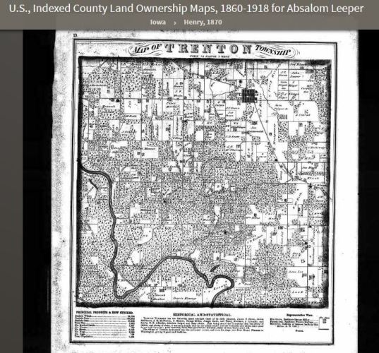 Today I found an 1870 map of land ownership for Henry County, Iowa on Ancestry.