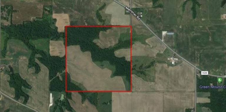 Here is the land outlined. In this view you can see the road that was in the 1870 map. You can also see a little green icon at the far right. It is for Green Mound Cemetery. I need to write a post someday about this cemetery as it is where Absalom is buried.