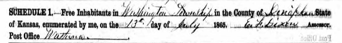 I next found David in an 1865Â Kansas Census. He was living in Washington Township, Doniphan County, Kansas.