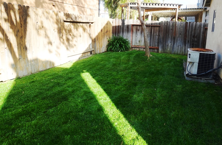 Here the backyard after making the two passes. The grass is nice and green and still very thick.