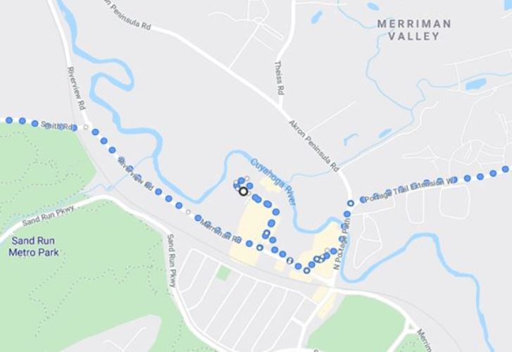 For a very short time many years ago I lived in Akron, Ohio. I decided that my Virtual Hike needed to go by the apartment complex that I lived in. The apartment was in the Merriman Valley on the Cuyahoga River. I had a wonderful view of the river from my living room.