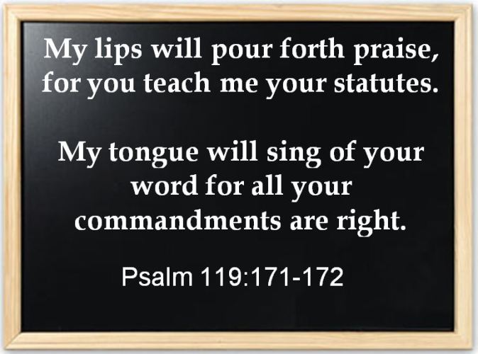Psalm 119:171-172 talks about lips and the tongue which go together, especially when we praise God and teach one another through the songs that we sing.