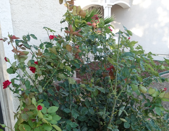 Here the rose bush is a lot cleaner and you can see that I have quite a few buds opening up.