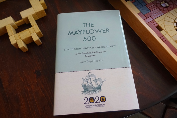 The book is The Mayflower 500: Five Hundred Notable Descendants of the Founding Families of the Mayflower by Gary Boyd Roberts.