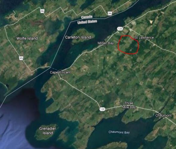 Here you can see the approximate area that he lived in. He would have lived less than two miles away from the St. Lawrence River and near the village of St. Lawrence. Many years ago I visited Cape Vincent and drove down the road along the river. I was that close to where he lived.