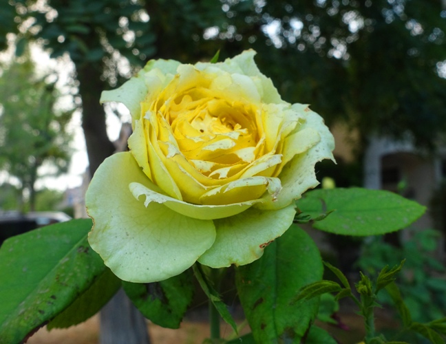 The 100+ degree weather has not been too kind to my yard and roses, but they will eventually recover as the temperatures drop and fall approaches.