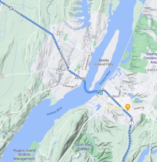 For this route I had to take a virtual ferry across the Hudson River to get from Athens to Hudson.