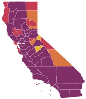 The counties that are purple in the map above are under the curfew that starts on Saturday night. These are the counties that are in the most restrictive tier for COVID-19. Of course, other counties can add a curfew or have stricter guidelines.