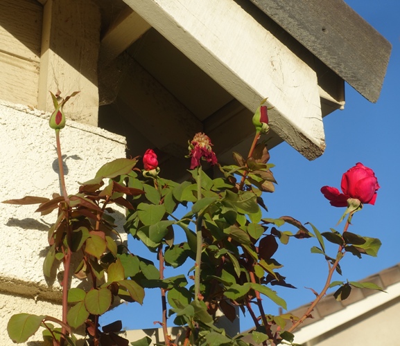 Here the roses are definitely up into the eaves.