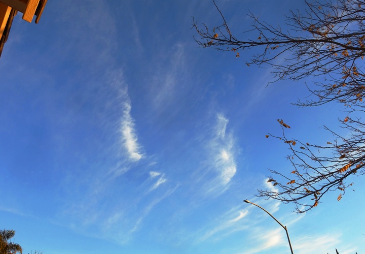 To the east we had some wispy clouds. In the morning it had been overcast and dark, but it cleared up throughout the day.