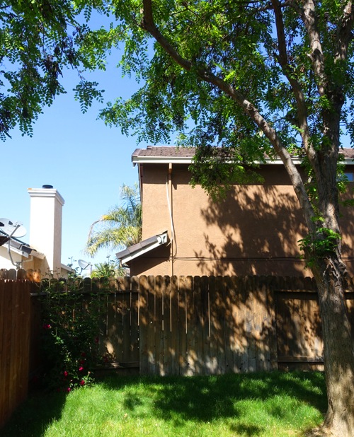 You can see here that one of the limbs veers off to the left in this picture. The big problem is that it then sends a few branches off over the backyard of the neighbors. I really should have trimmed it a couple years ago.