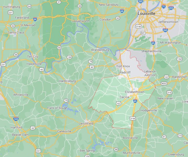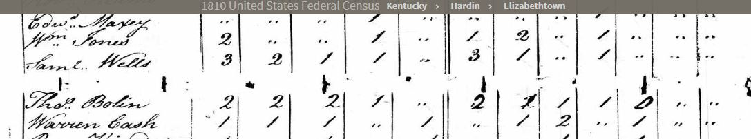 Both the Bolin and Lincoln families are listed in the area of the county outside of Elizabethtown which was the county seat. The county outline is the current outline and it was much larger in 1810. However, Elizabethtown was the only town in the county at the time.