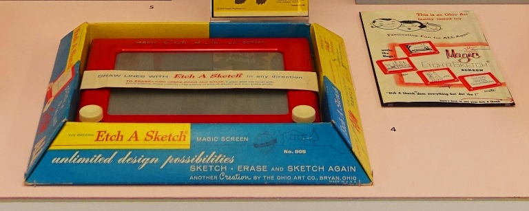 Of the toys in the display the one that I have the most memories of is the Etch a Sketch. I remember getting one when I was in the hospital in an oxygen tent.