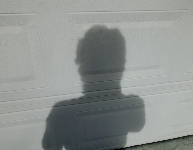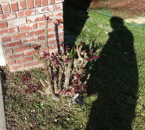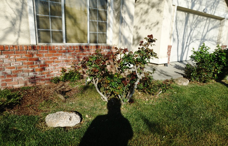 Here we have a nice shadow of me taking pictures of my roses starting to come back to life.