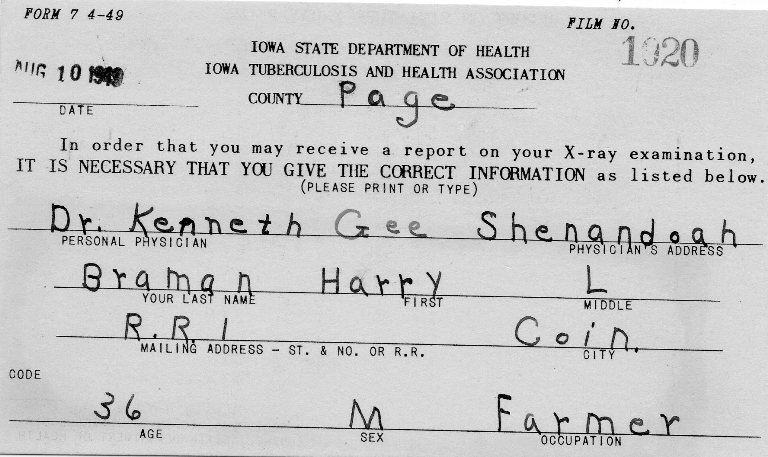 Do you recognize the emblem on the back of the envelope? There was a huge campaign to get people test for TB back at this time.