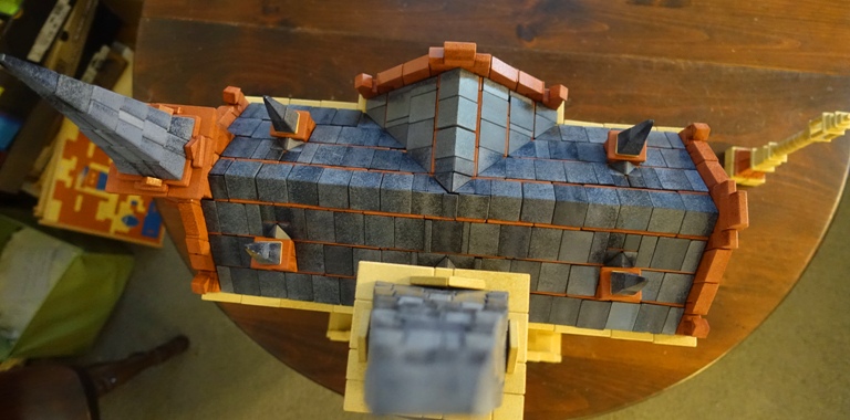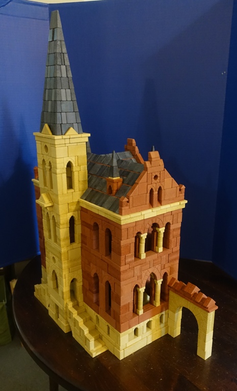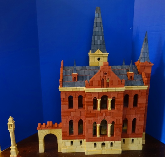 The tower reaches to almost three feet. There is a lot of detail in the building and it was a challenge to build in some spots.