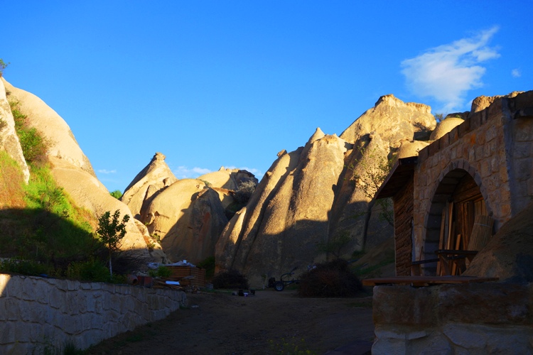 Also to the side of our hotel was a beautiful little valley. Here the morning sun is lighting up the unique Cappadocian rock formations. The rock formations in Cappadocia are unlike any that I had seen before. See: Cappadocian Chimneys and Cappadocian Scenery