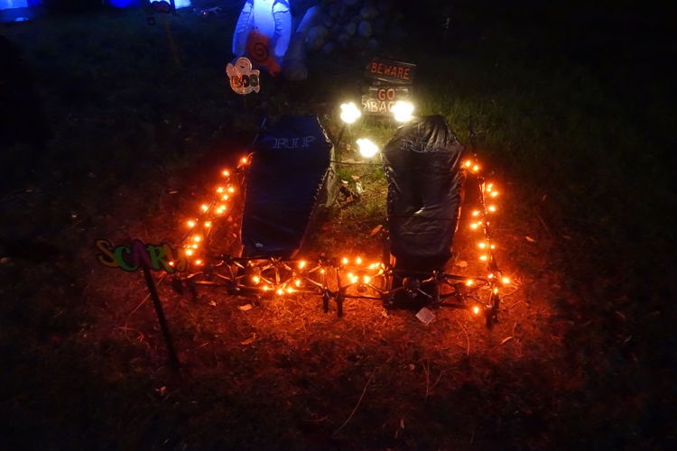 They also have coffins, lights and many small signs on the ground.