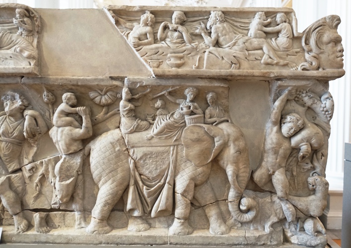 I took a picture of this section of a sarcophagus because of the elephant carving.