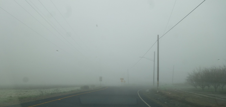 I thought that I would have a clear drive home, but as I headed north I could see the low clouds and fog in the distance.