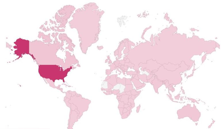 At the 40K mark the US has more than 10 times the views than our neighbors to the north. Canada has a little more than 2,500 views, the UK almost 1,500 and both India and Australia have more than 500.
