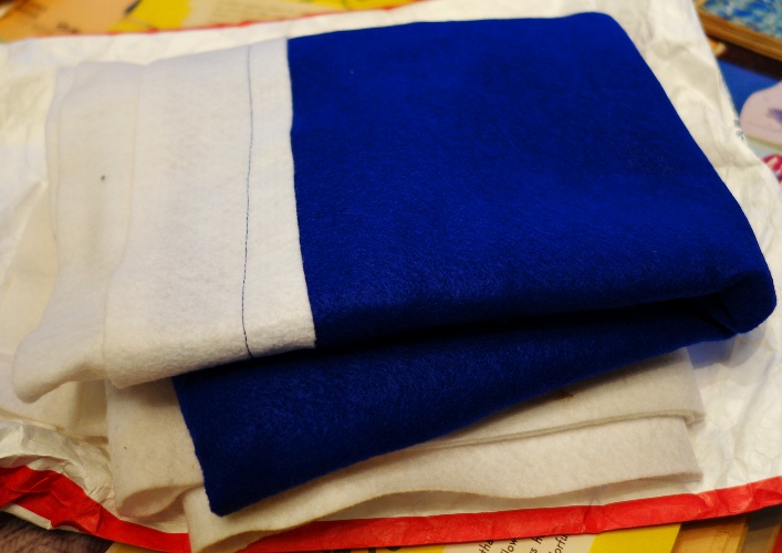 I opened the envelope and pulled out the contents. A large object made out of blue and white cloth was inside.