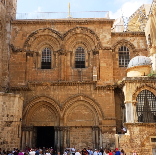 This is the entrance to the Church of the Holy Sepulcher in Jerusalem taken during one of my trips to Israel. This is a very complex building and interesting to visit.