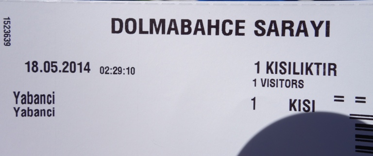 Here is my ticket for entry into the Dolmabahce Sarayi (Palace) in Istanbul. I was with some members of our tour group that decided to visit the palace on the way back to our hotel.