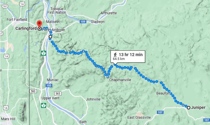 The previous destination on my virtual hike was Juniper, New Brunswick.