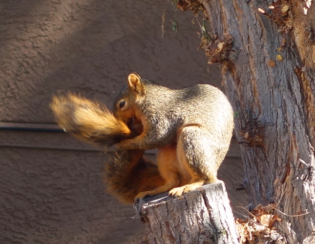 This morning I was looking out into my backyard and saw a squirrel.