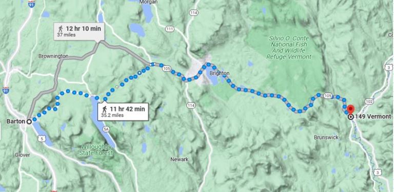 The virtual hike from Bloomfield to Barton went through the mountains of Northern Vermont and along the side of the Sylio O. Conte National Fish and Wildlife Refuge.
