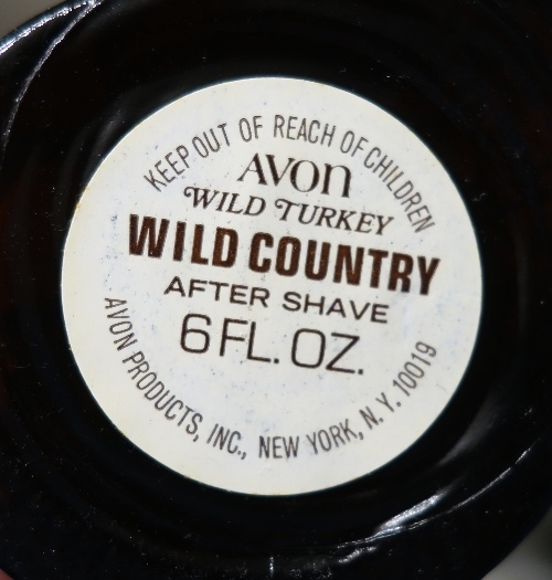 The bottle is still filled with Wild Country after shave. The bottle is in really good condition as it was wrapped in paper towels in the box, and still had the original plastic bag protecting the plastic head.