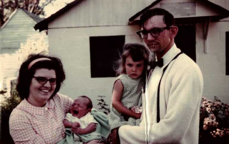 Here is a picture of me and my family that is way back. I obviously look like I was crying up a storm. My big sister does not look too happy either.